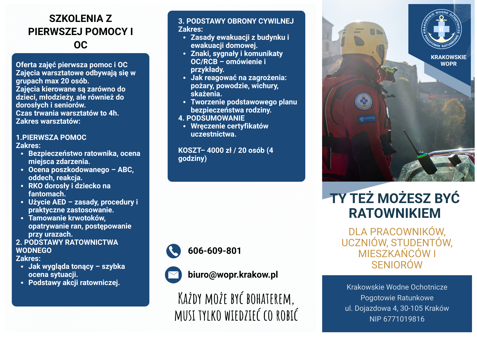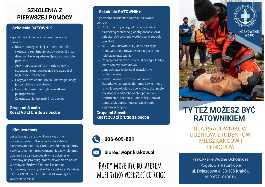 Krakowskie WOPR w roku 2026 realizuje projekt Ty też możesz ratować. Projekt realizowany przy wsparciu finansowym Gminy Krzeszowice @gmina_krzeszowice W ramach zadanie przeprowadzone zostaną dwa szkolenia w placówce oświatowej na terenie Gminy Krzeszowice, ponadto powstaną Dowiedz się więcej