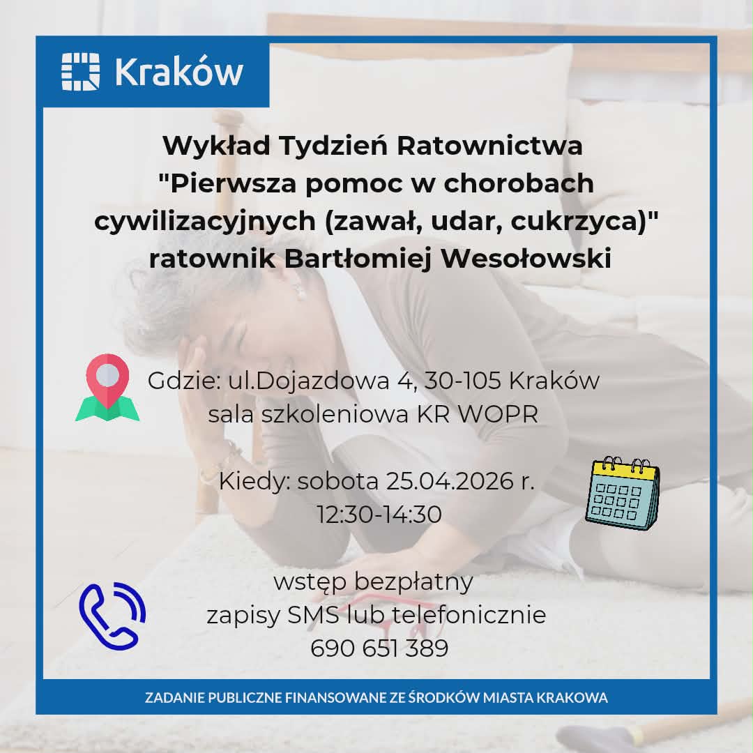 25.04.2026 12:30-14:30 „Pierwsza pomoc w chorobach cywilizacyjnych (zawał, udar, cukrzyca)”