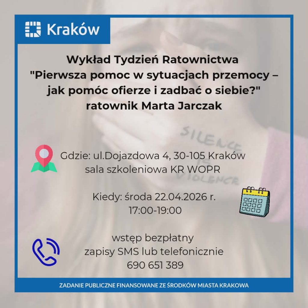 22.04.2026 17:00-19:00 “Pierwsza pomoc w sytuacjach przemocy- Jak pomóc ofierze i zadbać o siebie?”